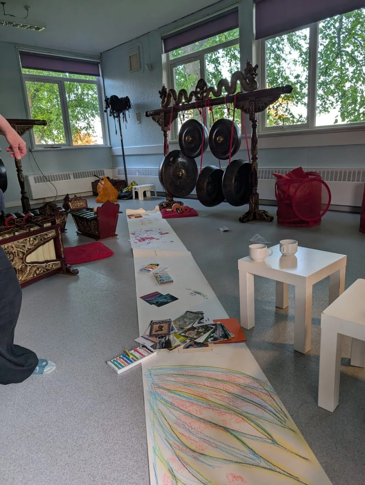 This is a flexible workshop that begins with a mindful non verbal space. There are options to rest, play quiet sounds, draw, journal, wander. This can then be taken in a number of different directions and tailored to the group.