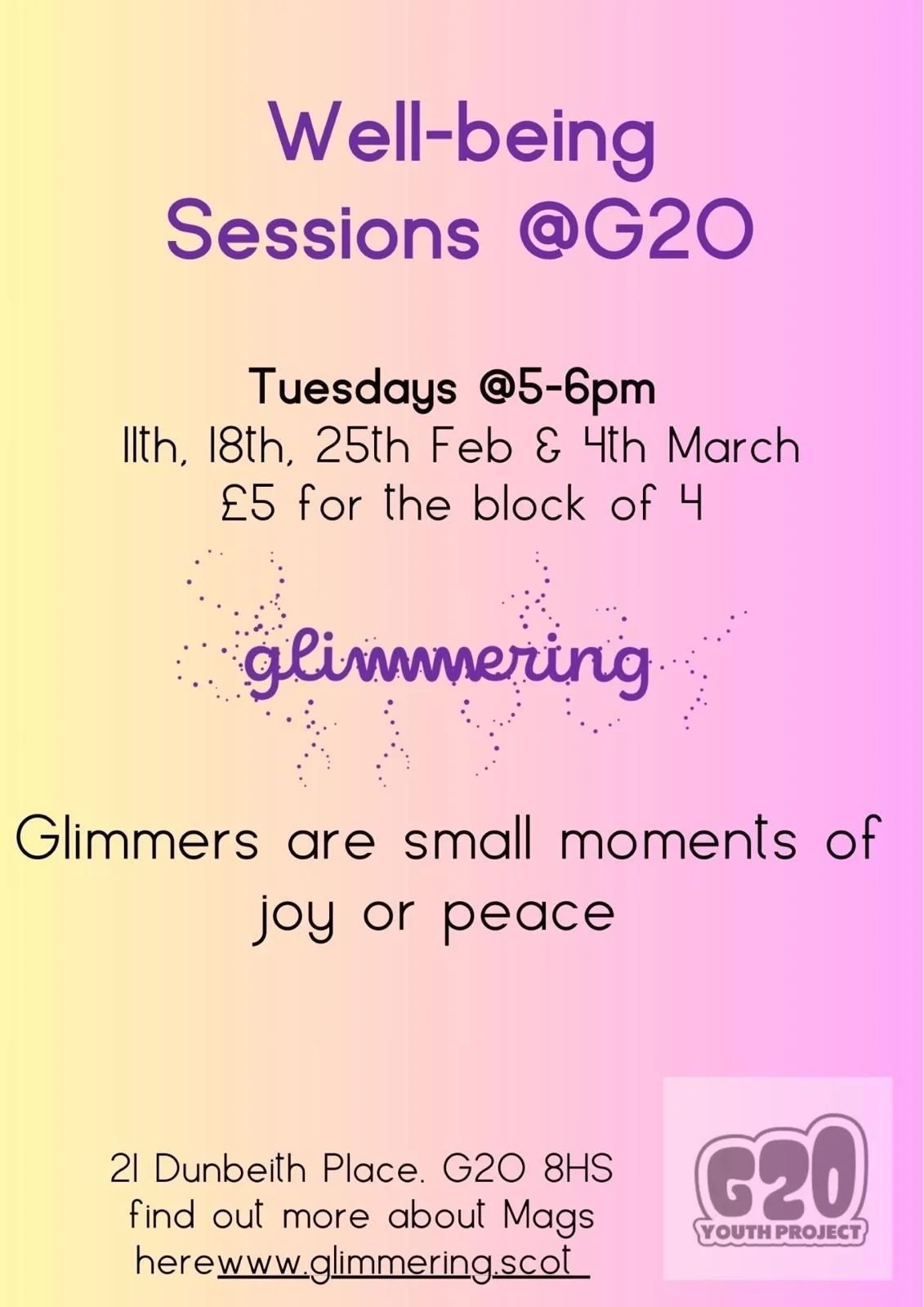 Above all glimmering workshops are playful and encourage people to build their resilience by discovering more about their own nervous system responses.